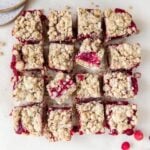 These Fresh Cranberry Bars are a great way to enjoy fresh cranberries this holiday season! Cook your fresh cranberries on the stove and layer it in-between a delicious oat crumble and you’ll have a satisfying and vibrant dessert to show off to your friends and family!