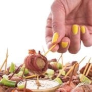 - Keep Items Bite-Sized: When planning the menu, consider items that can be eaten in one or two bites such as my Bacon-Wrapped Potato Bites. Or you can stick to something simple like charcuterie, and host a charcuterie party!