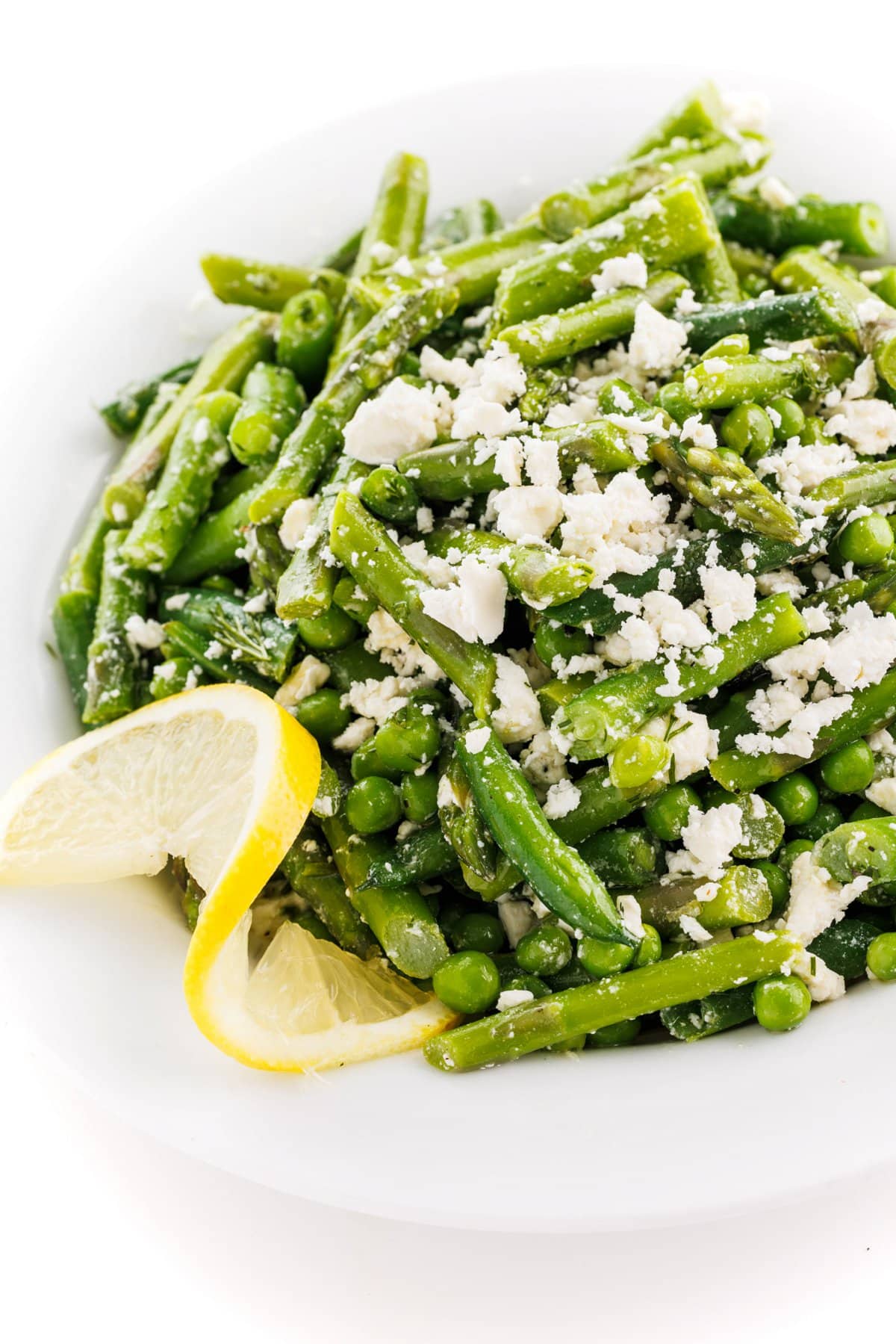 This bright and delicious asparagus salad with green beans, sweet peas and fresh dill is tossed in a lemon garlic vinaigrette. Delicious warm, chilled or room temp, it’s the perfect side dish to serve with fish, chicken or lamb.