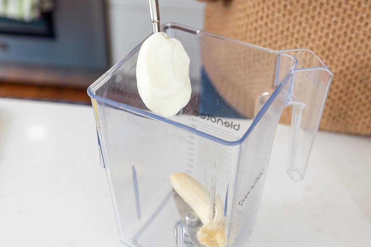 • Yogurt: I use 100% full fat, Greek yogurt for added protein and to make the smoothie more filling.