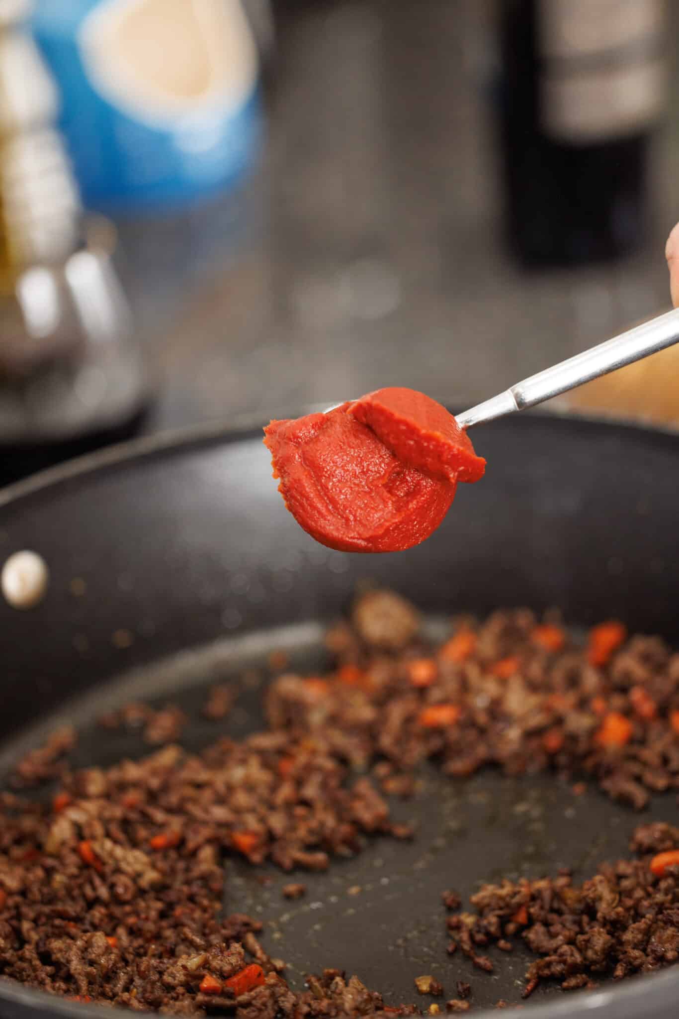- Tomato paste: Thick paste to help create the base for the sauce.