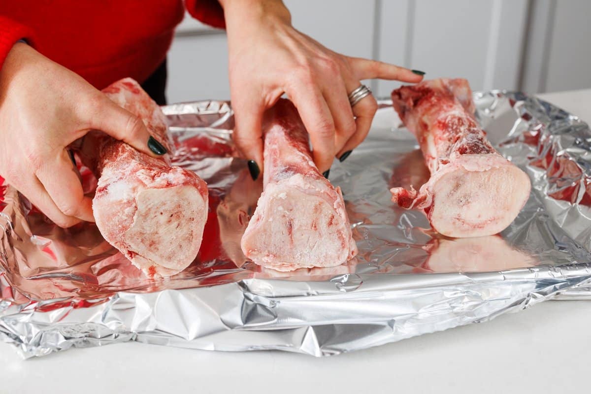 - Preheat oven to 450 degrees and place beef bones on a large baking sheet in a single layer. Roast bones until browned, about 30 minutes.