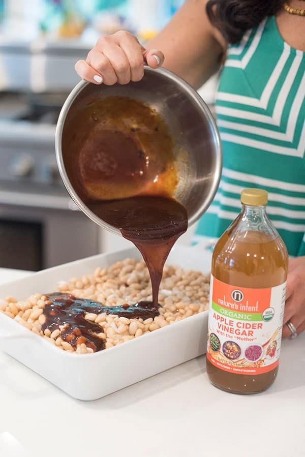 The secret to my Boston baked beans recipe is all the sauce. Sweet, tangy and a slight kick of heat, my molasses-based sauce is made with a variety of staples you probably already have on hand including ketchup, Dijon mustard and Nature’s Intent Organic Apple Cider Vinegar.