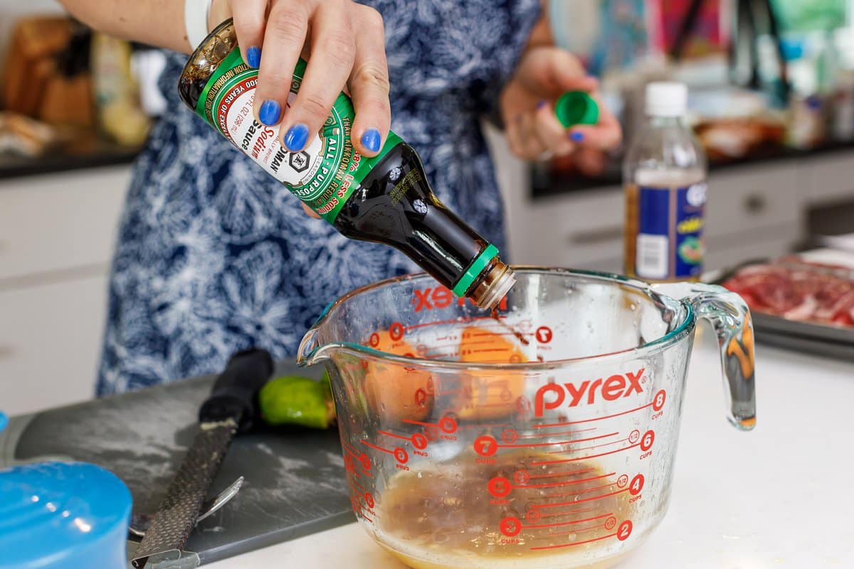 Next add the soy sauce to the bowl.