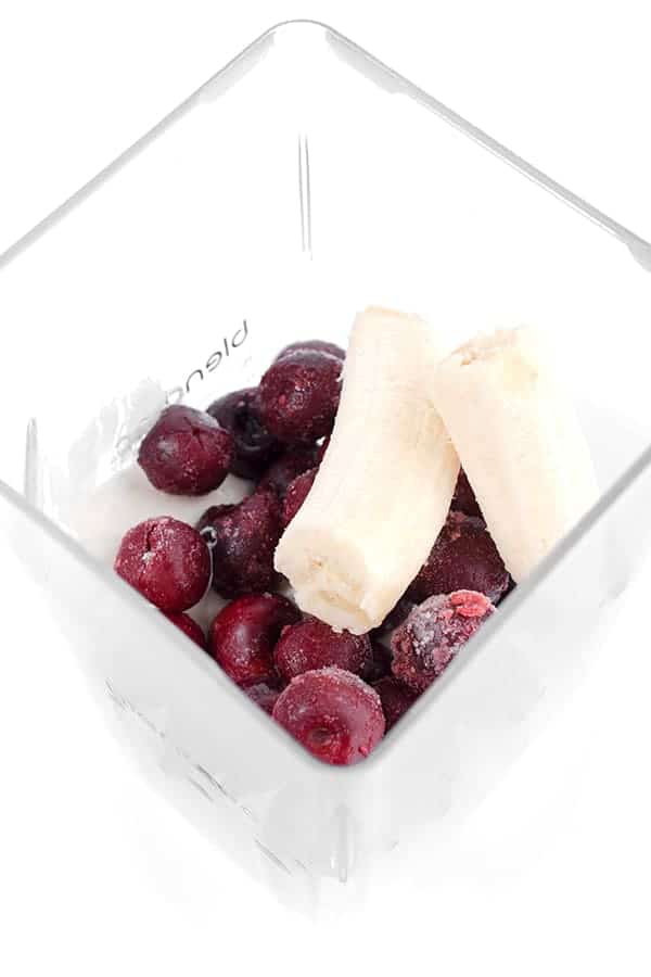 Recently I paired two of my favorite fruits: sweet black cherries and bananas. Of course, cherry season only lasts a few weeks here in Michigan so I always keep my freezer stocked with frozen, pitted cherries.