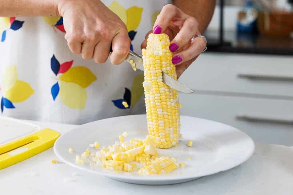 Step 1. If using fresh corn, remove the corn from the cob.