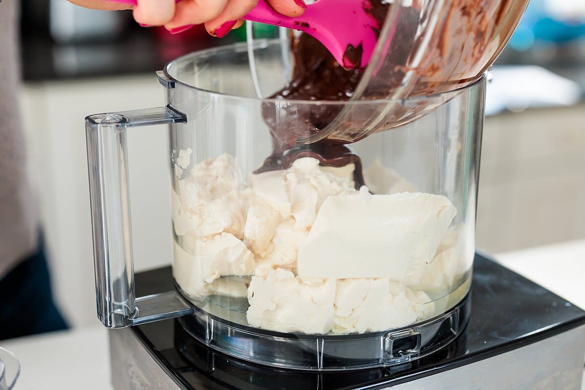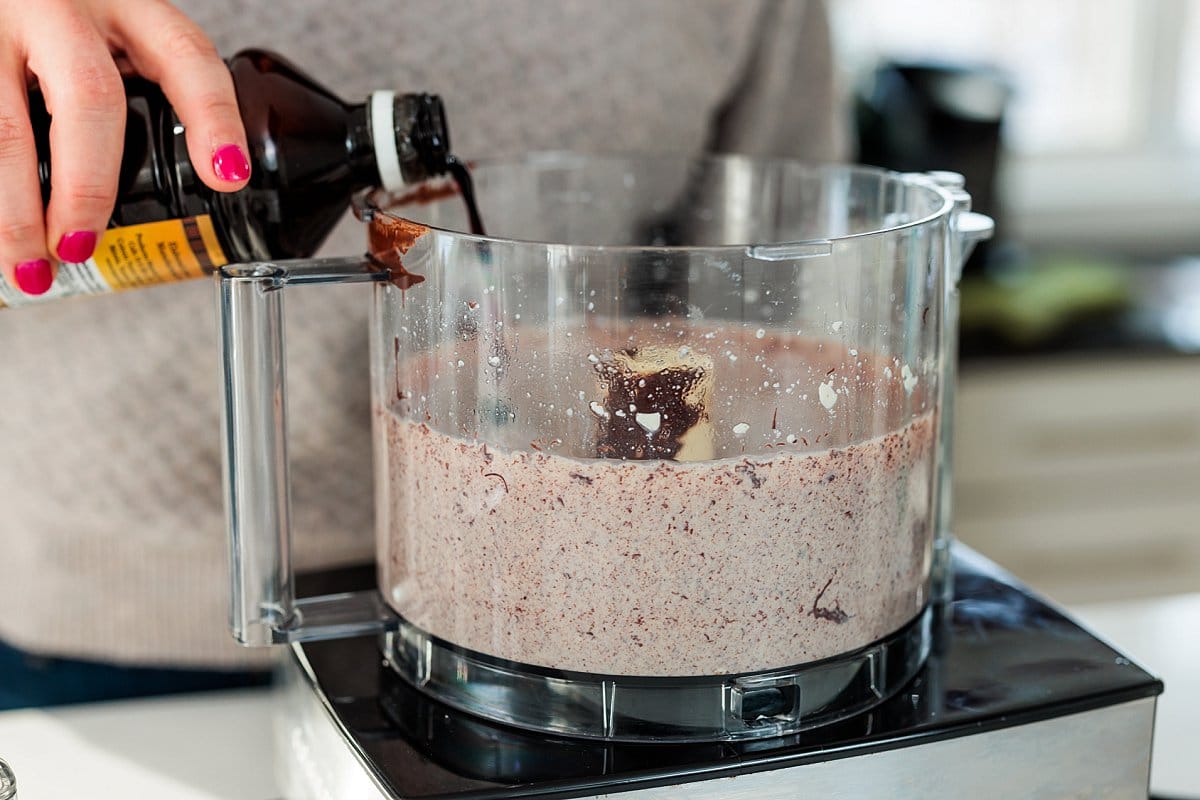 - Stir the vanilla extract, espresso powder and salt into the melted chocolate until combined. Add chocolate mixture to the tofu in the food processor and pulse until smooth and creamy.