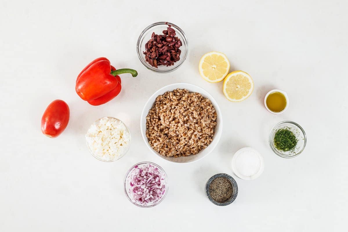 Then serve and enjoy your Farro Greek Salad with Feta and Dill!
