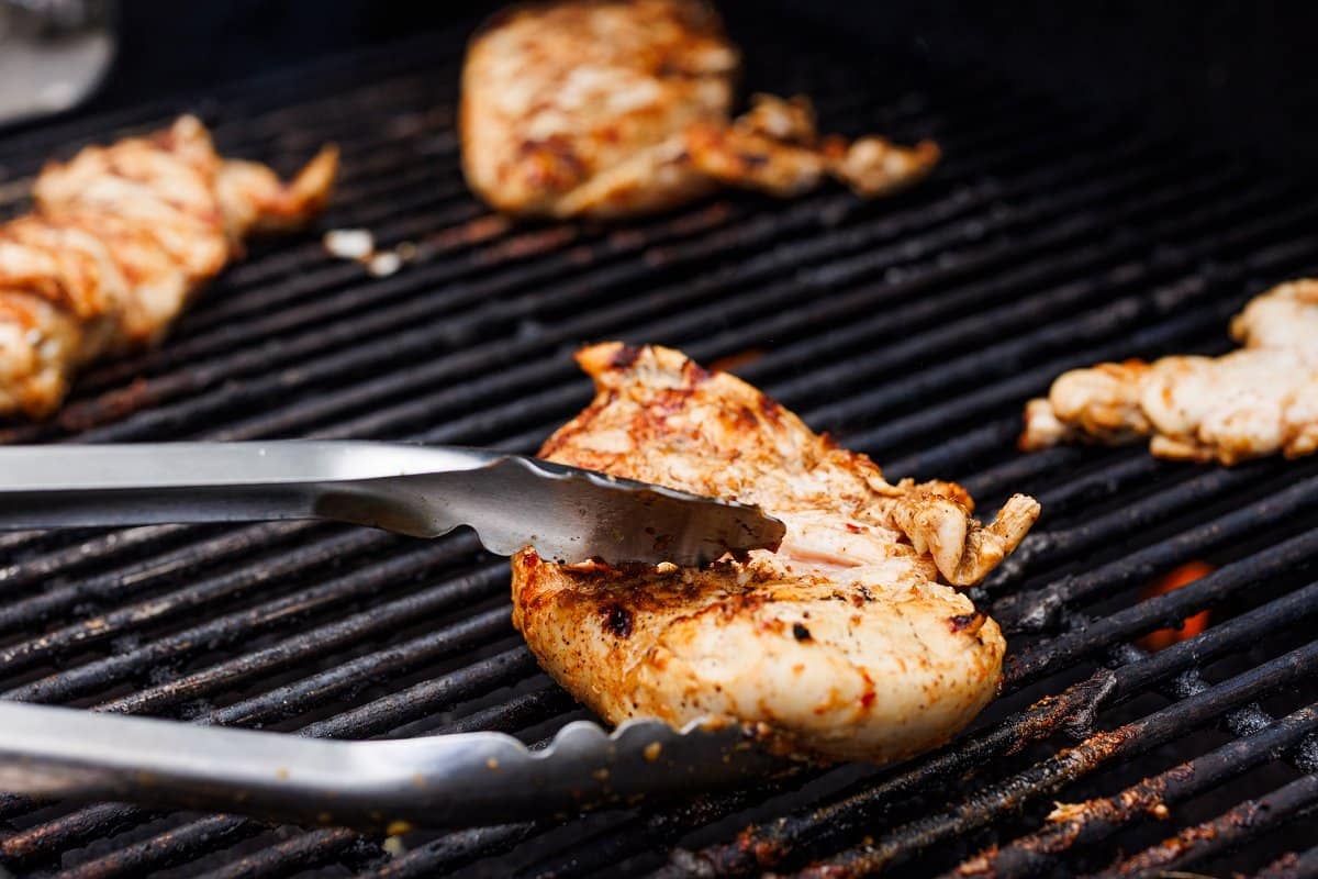 Pre-heat your grill to high heat, then add the chicken and cook 6-7 minutes per side.