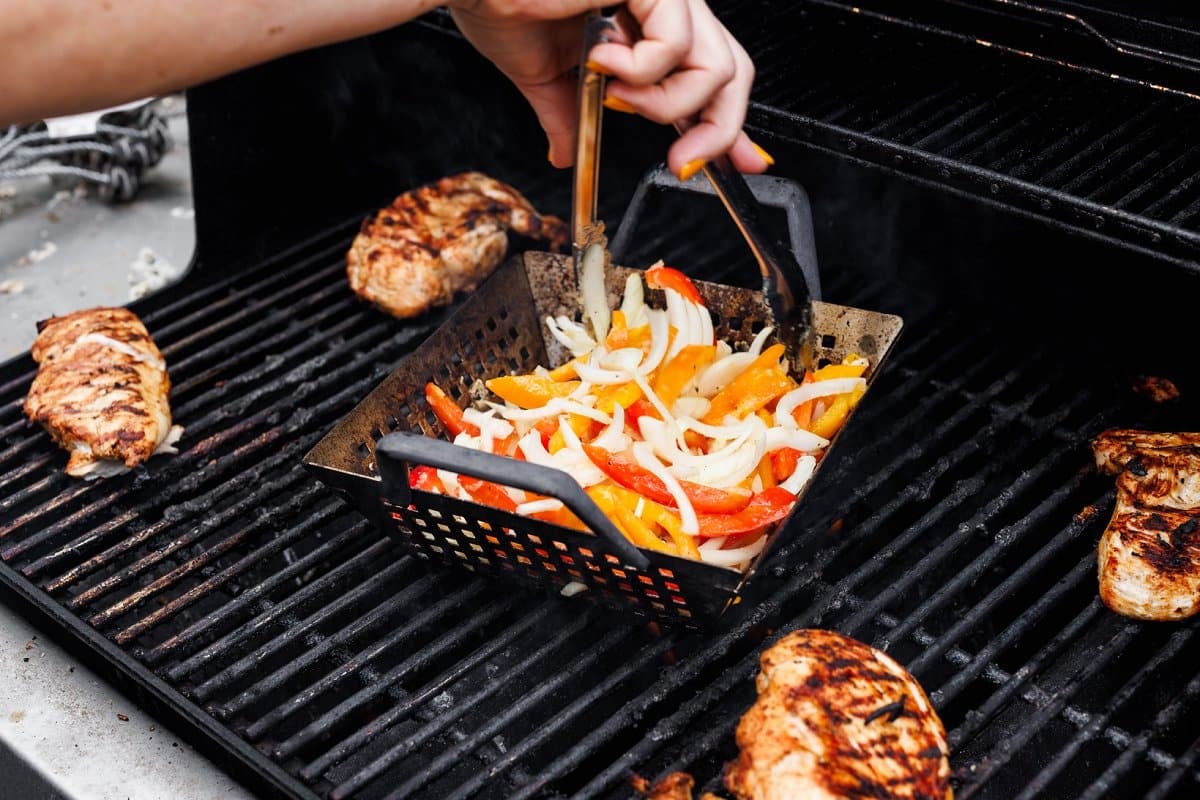 - Grill vegetables in a grilling basket until tender and caramelized, tossing frequently, about 9-11 minutes. Serve with grilled chicken.