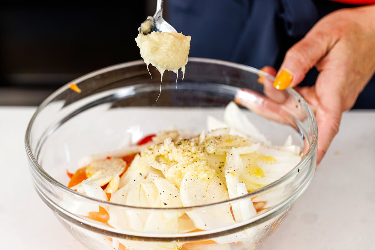 - Olive oil: Used to marinate the chicken and coat the veggies to help get an even cook.