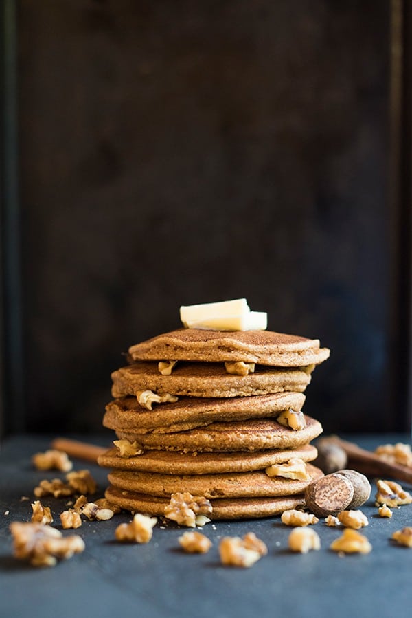 These hearty buckwheat pancakes are lightly sweetened with molasses and scented with warm gingerbread spices like cinnamon, cloves and ginger.