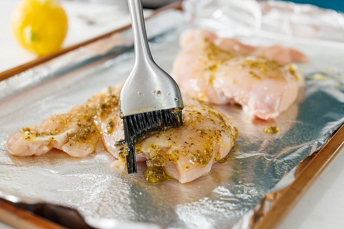 - Using hands, gently rub the mixture on the chicken breasts.
