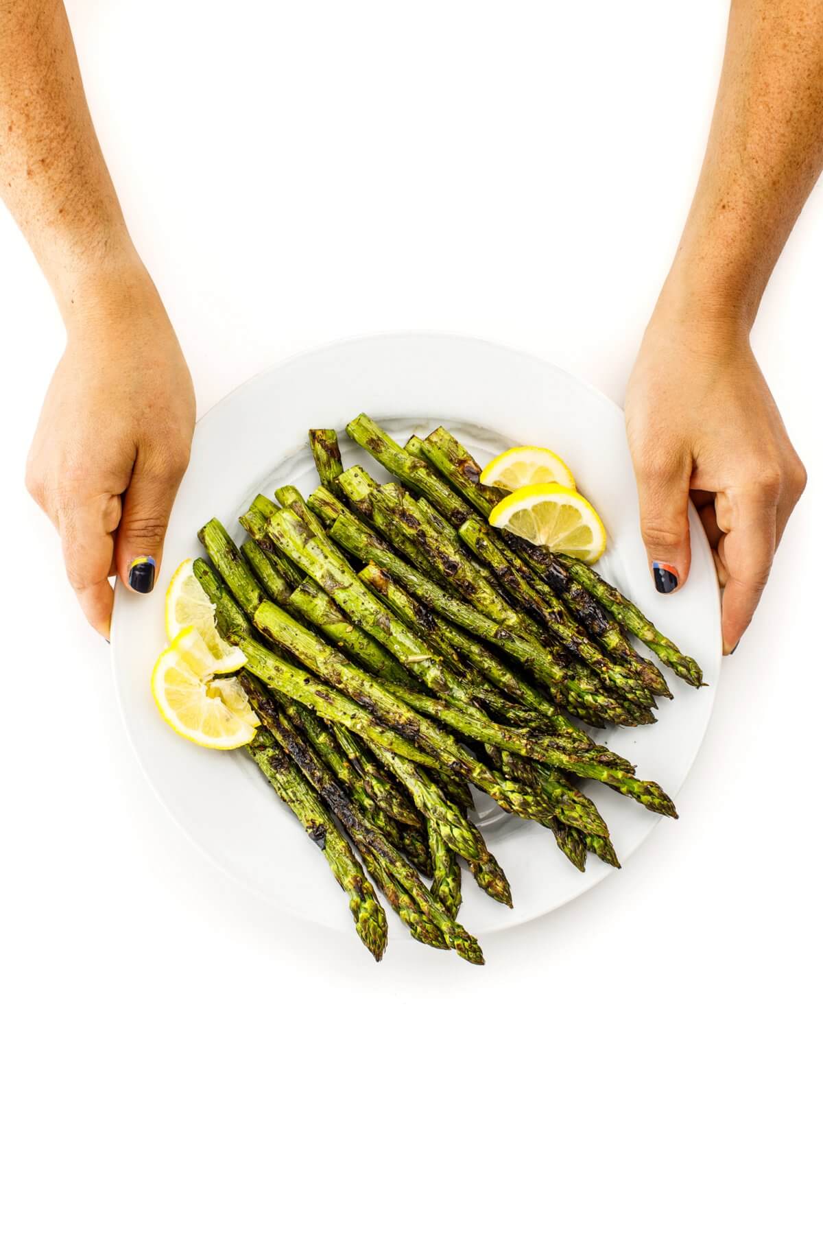 A fast and easy side dish recipe, asparagus is coated with lemon and za’atar and grilled until slightly charred.