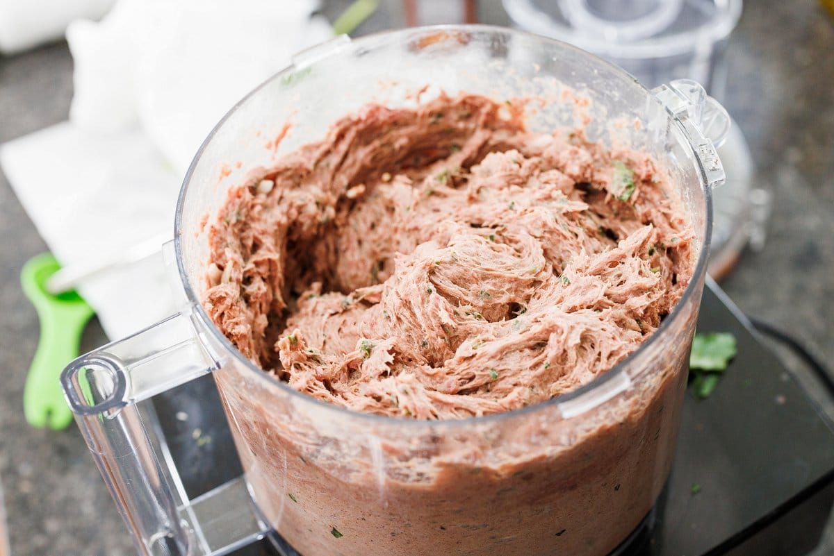 Pulse blend until combined and the onion and parsely are broken up throughout the meat.