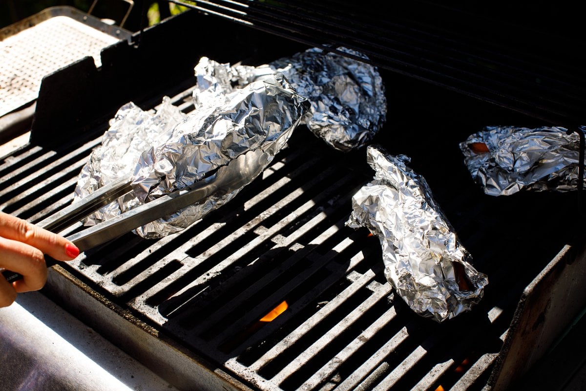 Now it’s time to make the foil packets! Simply place the potatoes in the middle of the foil then fold the foil to create little packets to toss on the grill.