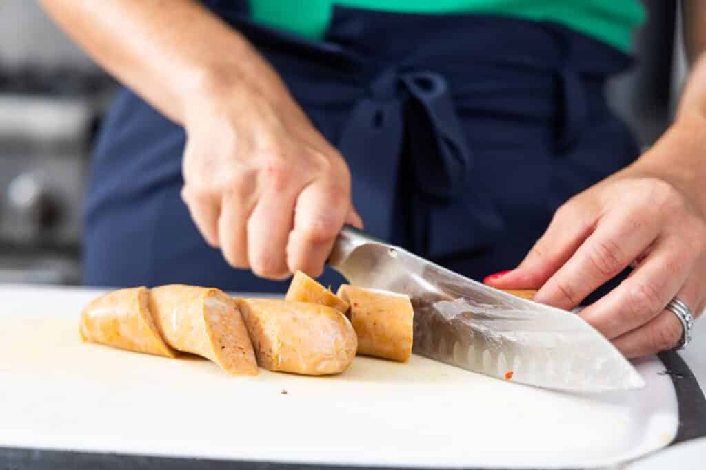 Step 2. Cut your sausage into smaller, bite-sized pieces. Or, depending on the size, you could choose to leave yours whole.