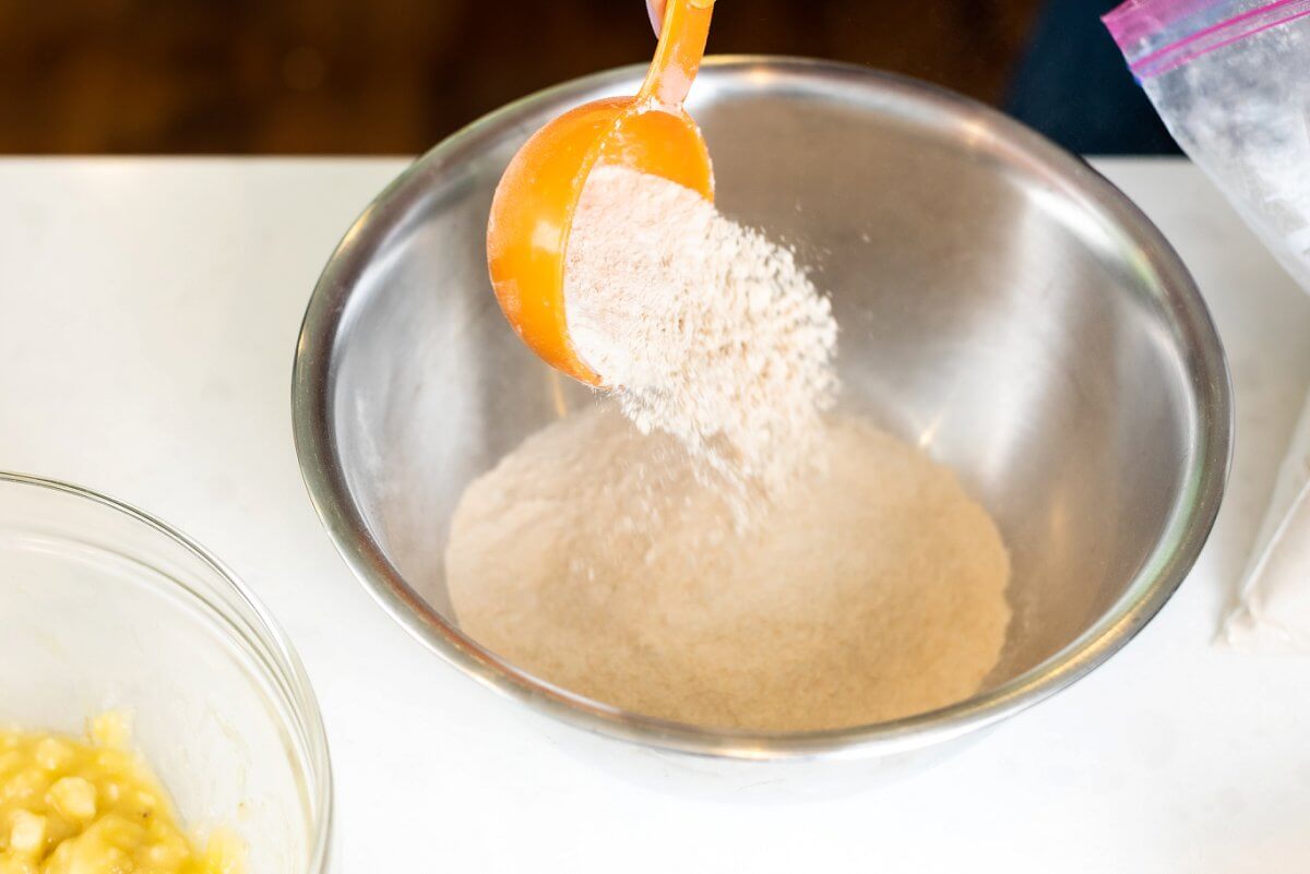To start, I love using overly ripe bananas which are naturally super sweet. This eliminates the need for more added sugar than you really need. Another tip is to swap out traditional all-purpose flour with whole wheat pastry flour. You can purchase it in most large grocery stores or online.