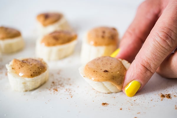 Now available in five flavors, I’m so excited to share 9 healthy snack ideas using nut butter. For these recipes, I used their newest flavor, Maple Almond Butter, but truthfully these snacks would work well with ANY flavor. First up: drizzle it over oatmeal! Start with my 90 second microwave oatmeal recipe, top with fruit then drizzle with nut butter.