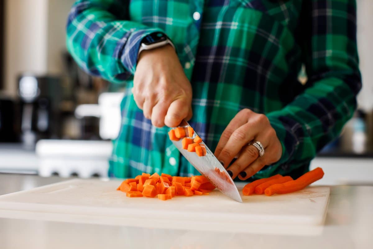 While not customary, I decided to bulk up the curry with additional veggies including cauliflower, potatoes, carrots and peas. Feel free to add in any veggies you have on hand. You can also omit the veggies entirely and keep it more traditional.