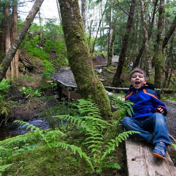 First of all, let’s talk about the ATV. It was so much fun and ideal for a family of four! Our boys got to sit on their own in the back, safely buckled in, taking in all the sites and sounds of the Alaskan rainforest.