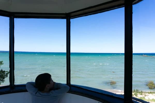 One of our favorite pit stops was Mission Point Lighthouse located at the tip of the peninsula. My oldest had so much fun climbing up the tiny staircase to the lookout tower.
