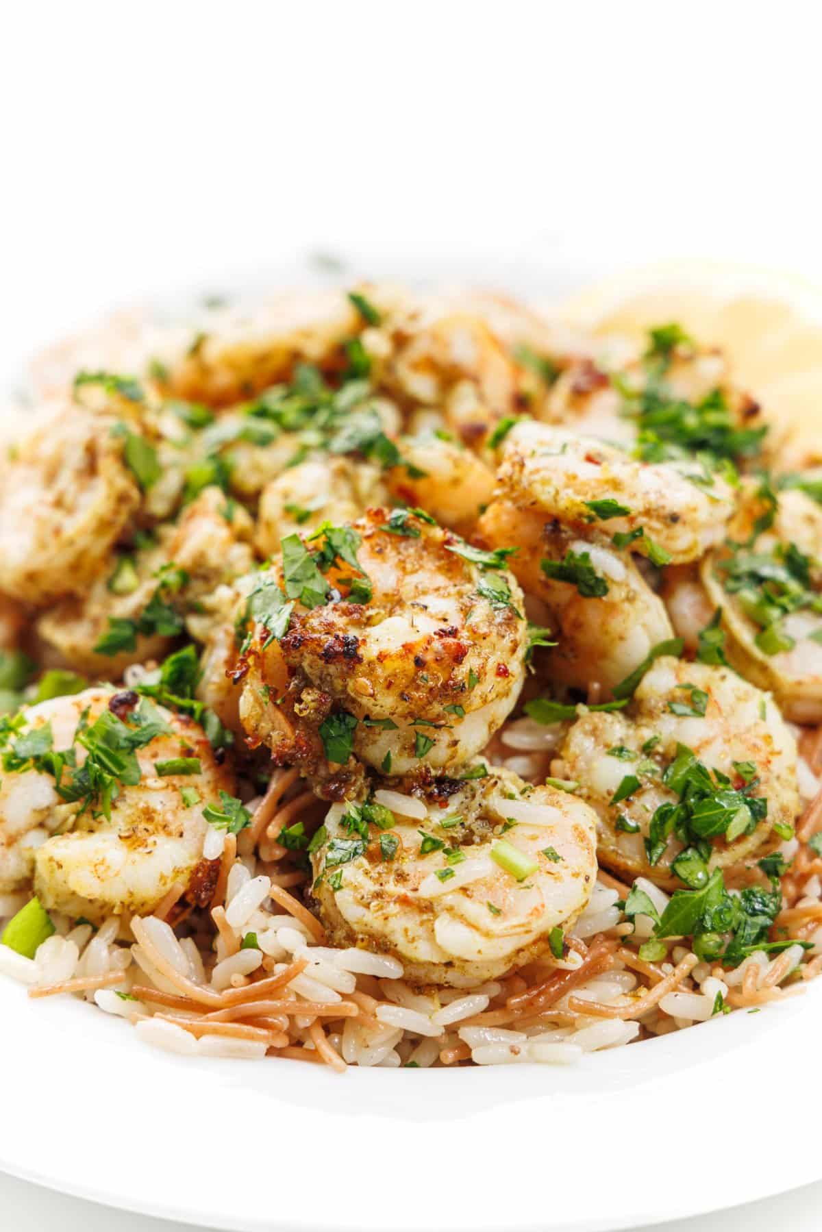 It’s never been easier to make seafood at home than now. Shopping at my local D&W Fresh Market, they have a wonderful selection of both fresh and frozen seafood that you can turn into a healthy meal at home. And with appliances like an Instant Pot and air fryer, healthy meals come together so quickly! With my groceries delivered quickly and affordably, I came up with this delicious Lebanese Air Fryer Shrimp, that I highly recommend you serve over my Lebanese Rice Pilaf with Vermicelli.