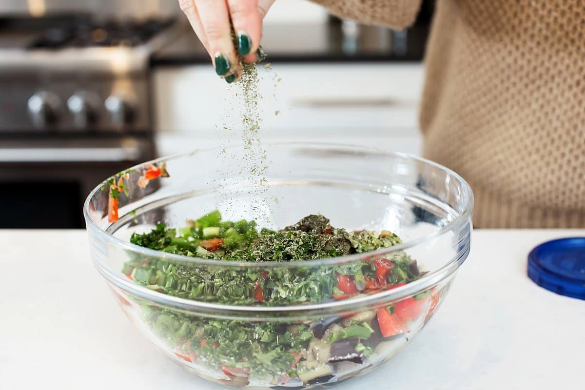 I bet you never thought there were so many ways to enjoy eggplant, did you? It’s one of my favorite foods to use in flavorful dishes because it’s spongy texture soaks everything up so well. I commonly use it in my Middle Eastern cuisine, and that applies to my Lebanese Eggplant Salad. While eggplant is much better cooked, it doesn’t have to be served hot! In this chilled salad, the eggplant is roasted ahead of time to give it that smoky flavor, before cooling, dicing, and tossing with the rest of the ingredients.