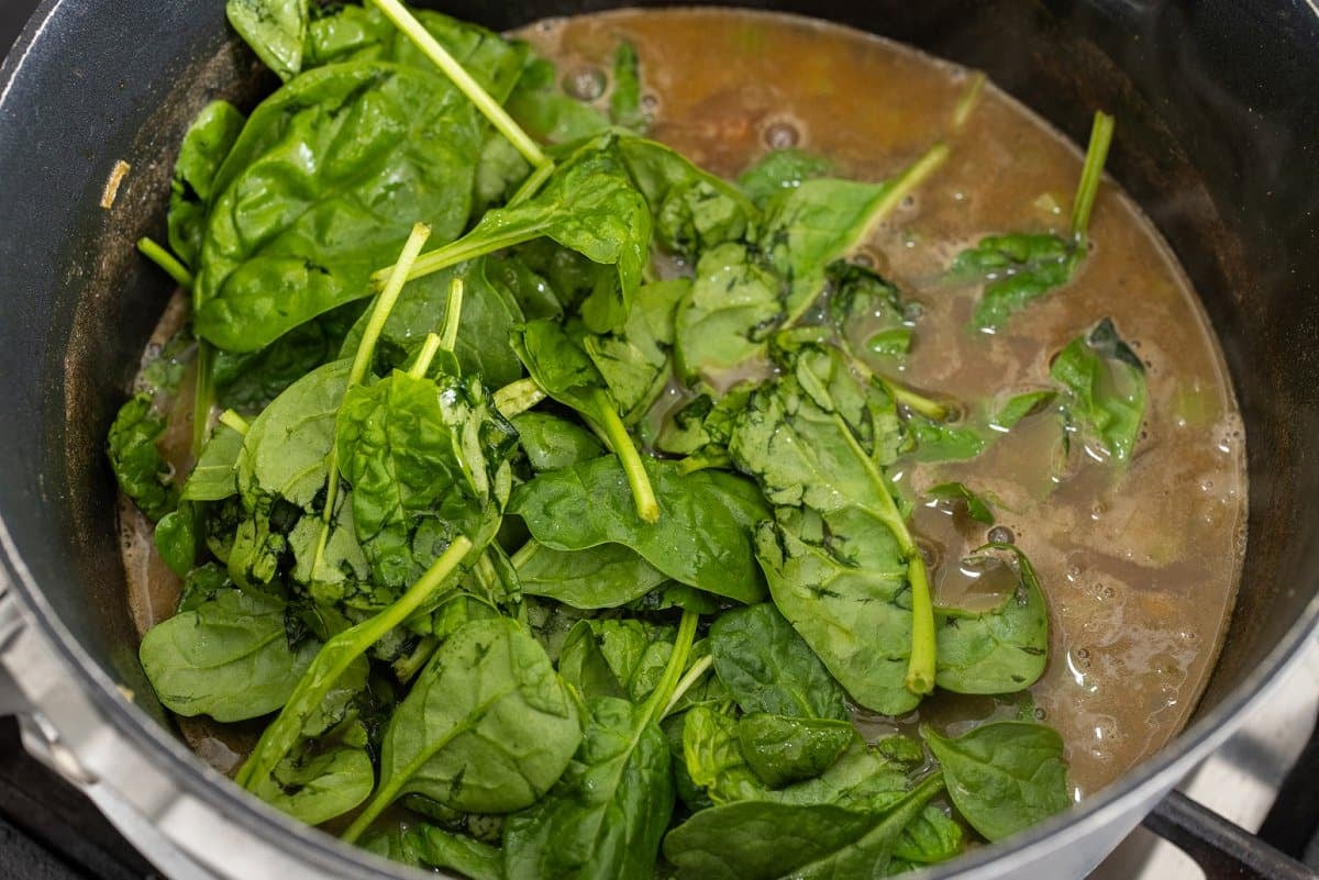 Add in the spinach leaves and cook for just a couple minutes until greens are wilted.