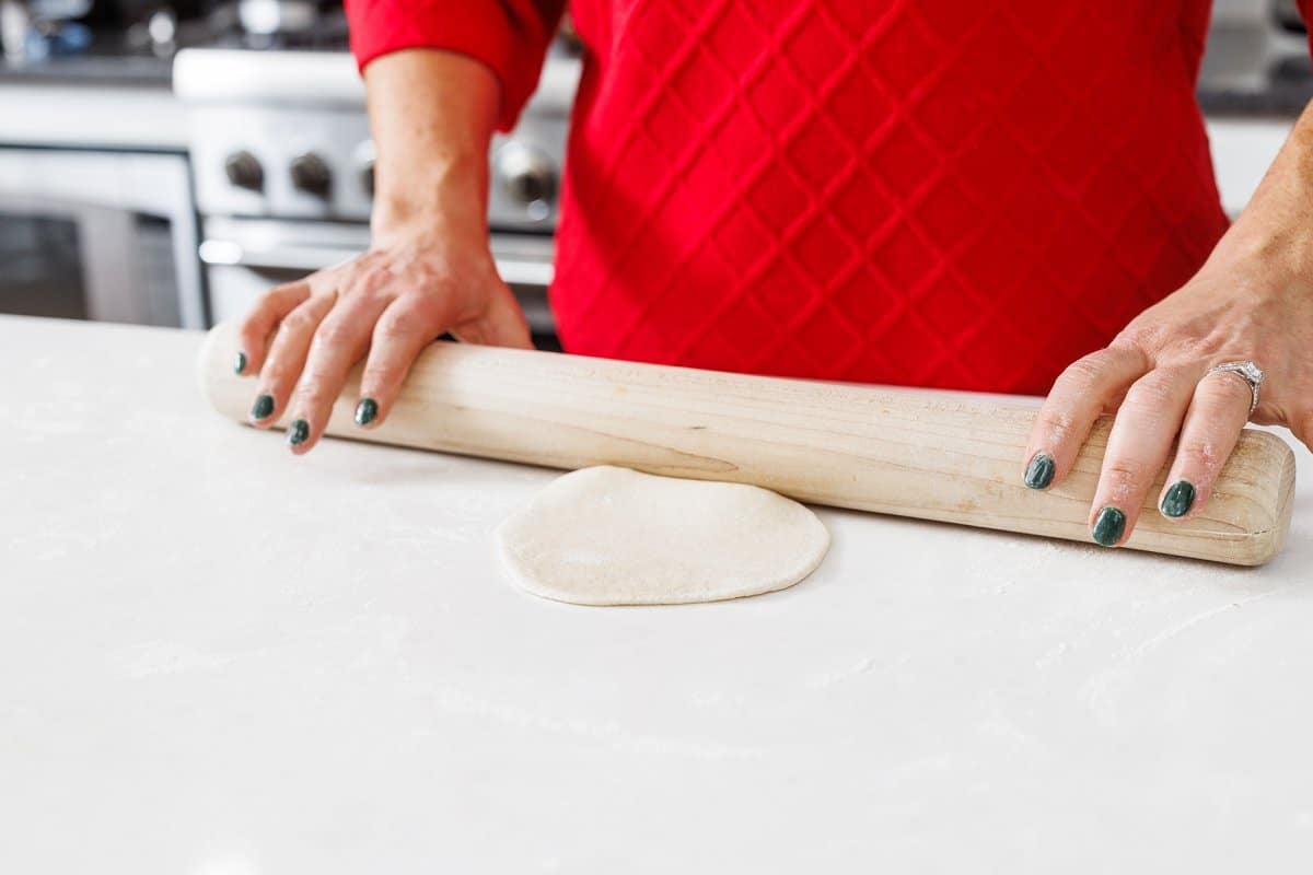 Now that the filling is done, take the dough you had set aside and roll it out into discs about 1/8th of an inch thick, and about 3-4 inches wide. If you don’t have a rolling pin, you could also use a tall glass.