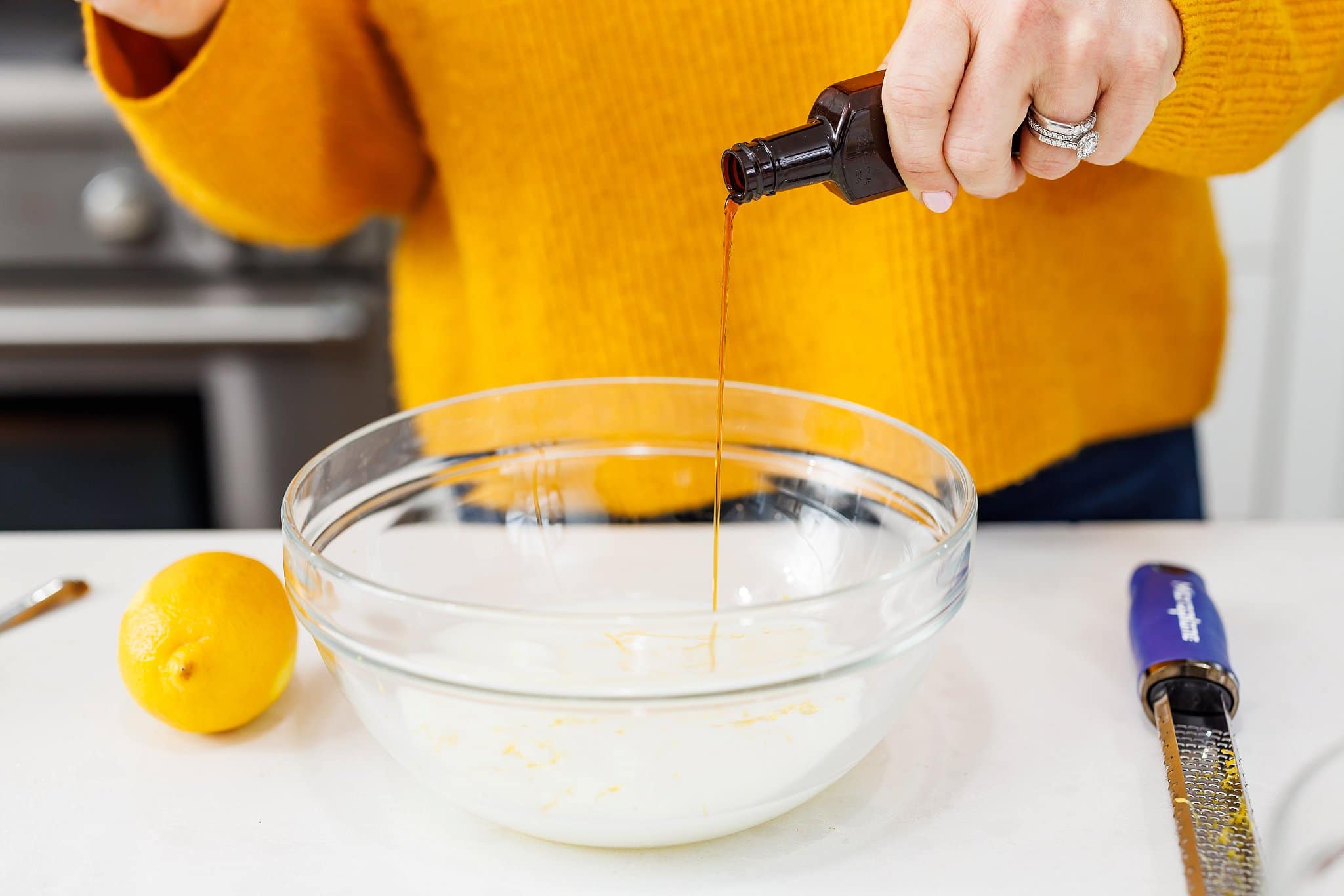 Then use a microplane or grater to zest your lemon.