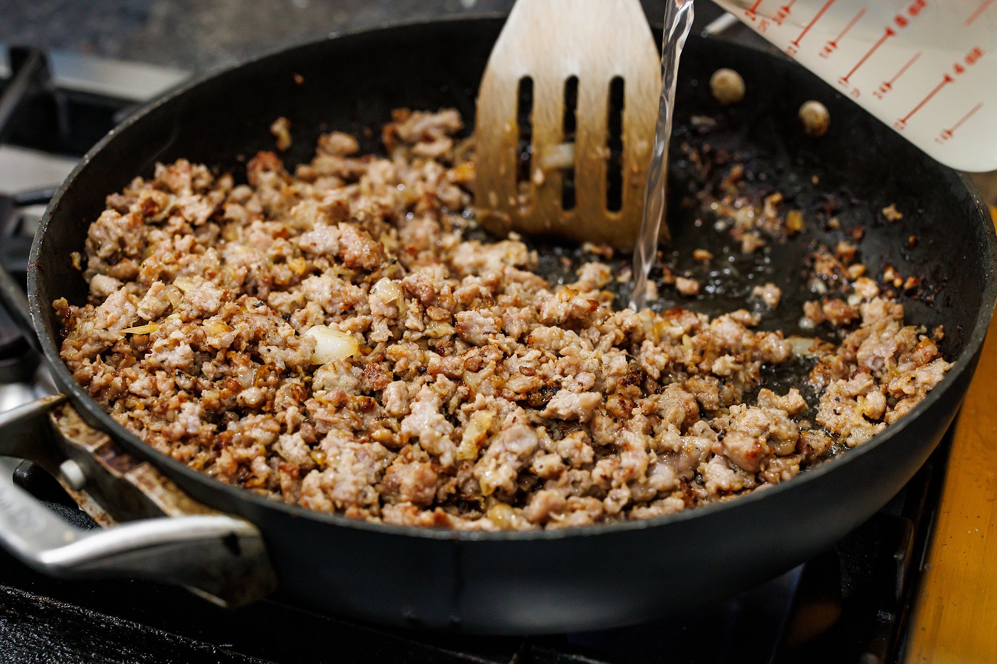 Once sausage is browned, use the reserved pasta water to deglaze the pan. You could also use chicken broth, or some wine.