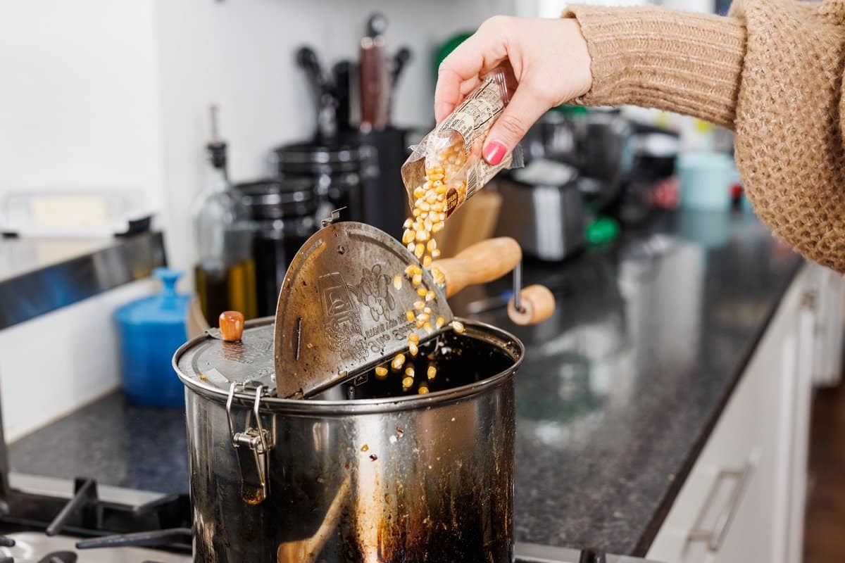 - Popcorn kernels: while you could use unflavored microwave popcorn, I’d recommend popping kernels on the stove or in a popcorn popper! Yellow or white popcorn will work.