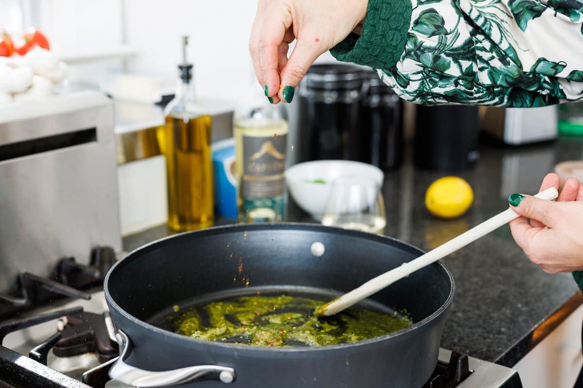 - Chili flakes: Adds just a kick of heat and nuance to the flavors of the pesto sauce.