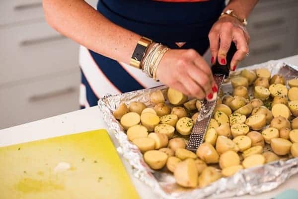 For this recipe I decided to toss Little Potato Company Baby Boomer’s with fresh minced rosemary since I have it growing like a weed in my garden right now. If you don’t have fresh on hand, dried works well too. Simply reduce the amount of fresh by half to get the measurement for dried herbs since they are stronger.