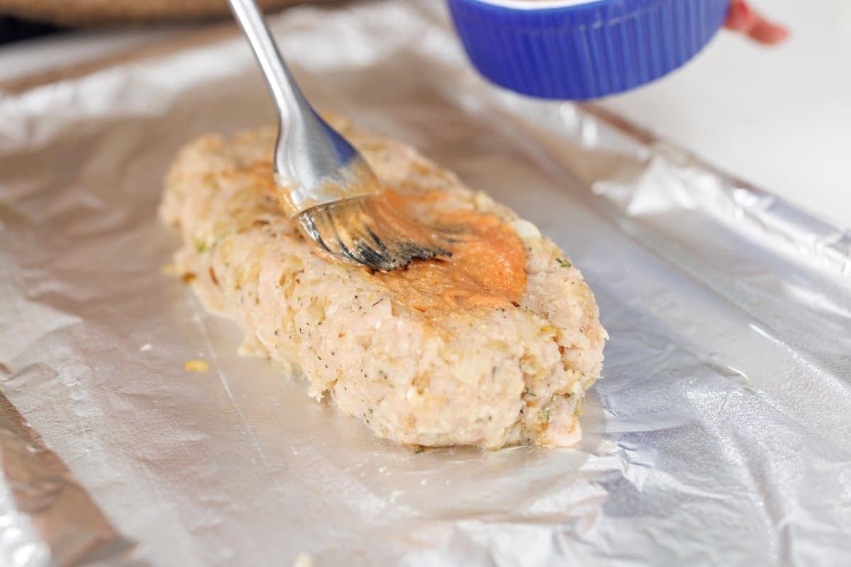 Then take your meat mixture and form a loaf on a prepared baking sheet lined with foil.