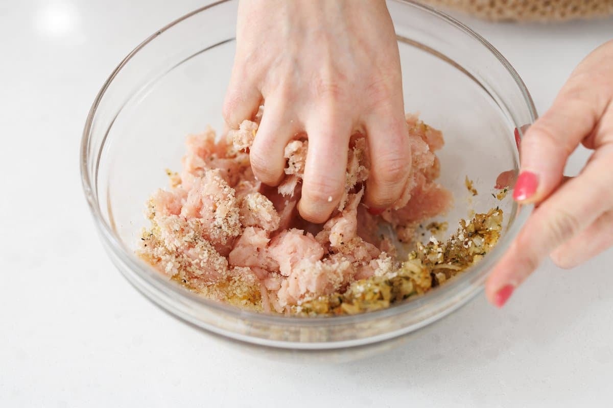 Then using your hands (they’re the best tool for this), mix it all together until fully combined.