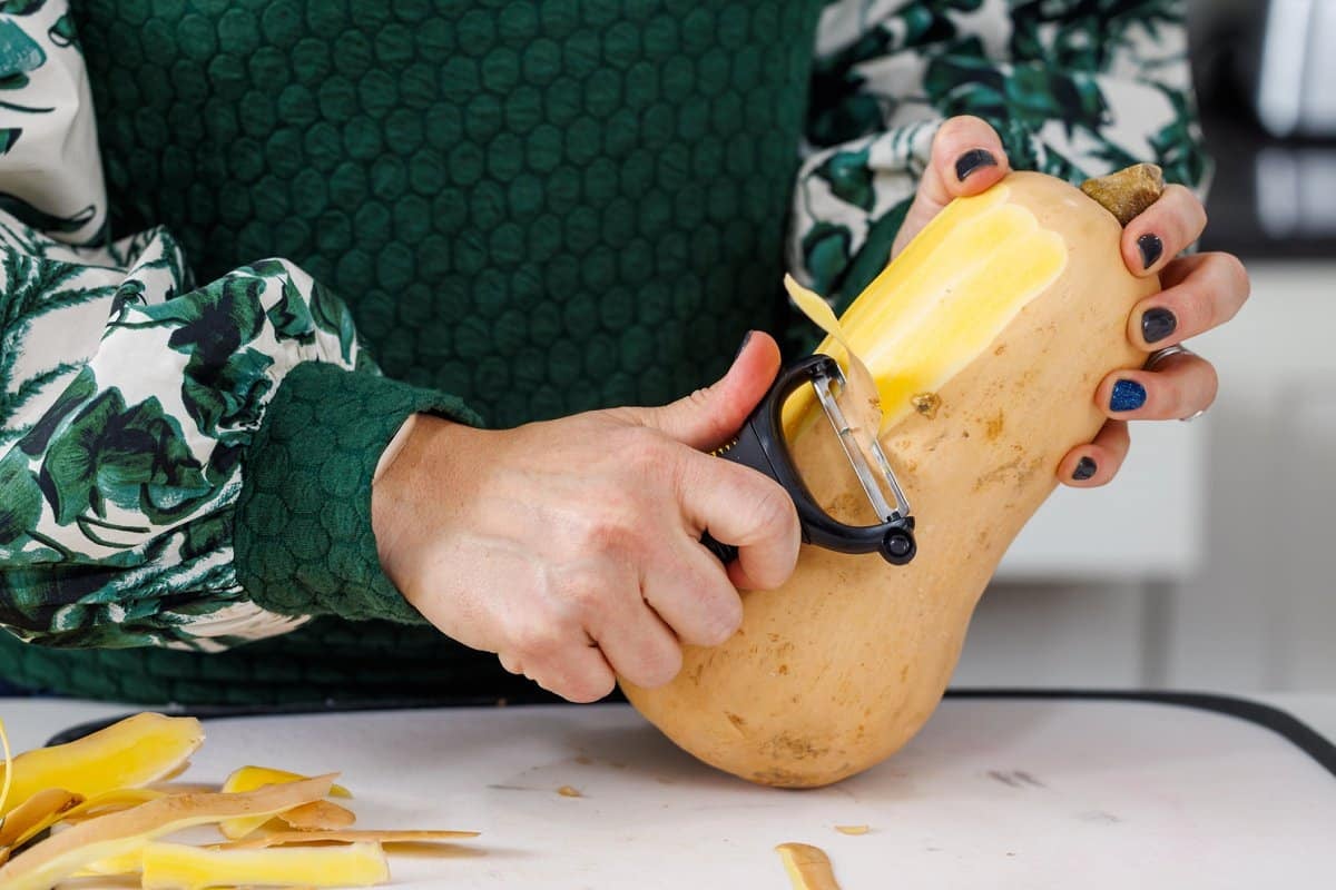 Step 1. Start by peeling your butternut squash.