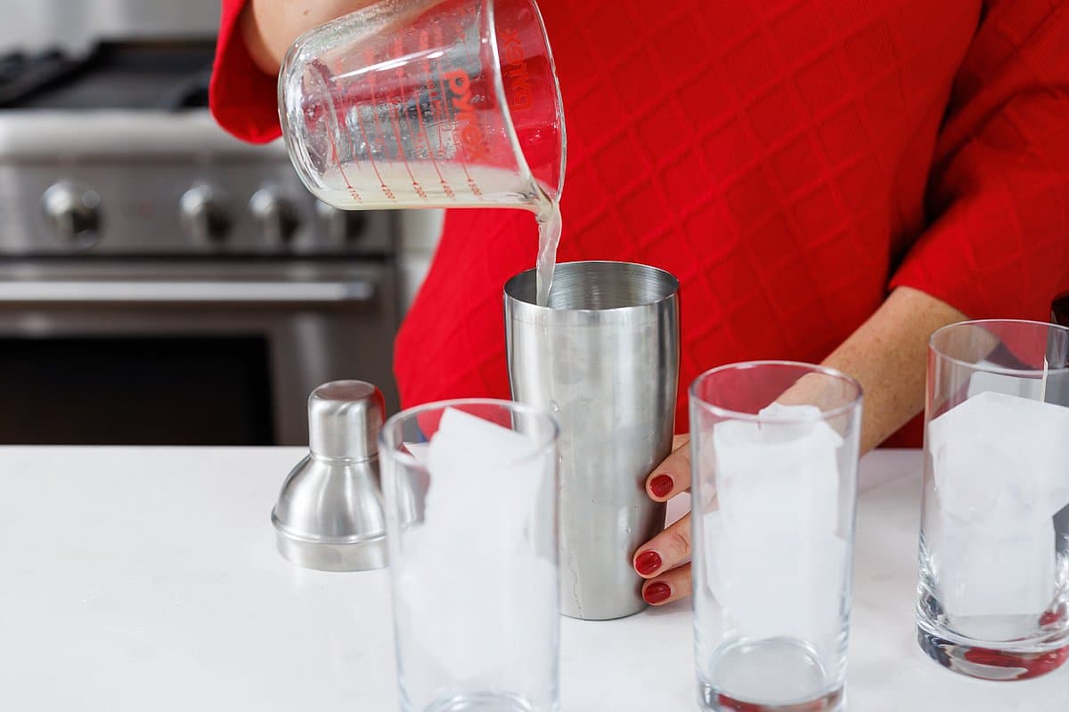 Finish filling your shaker with either gin or vodka. While a classic Seabreeze is made with vodka, personally, I prefer gin.
