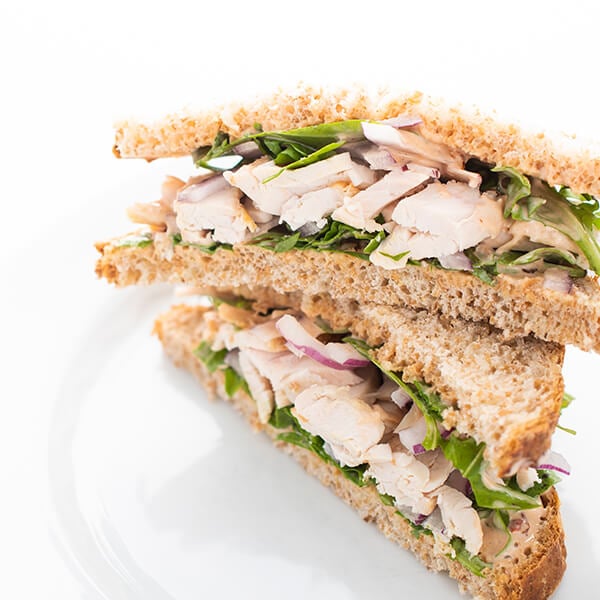 This hearty, whole grain sandwich is made with shaved chicken, baby arugula and a creamy, chipotle mayo. The perfect recipe for lunch, dinner or a picnic to go!
