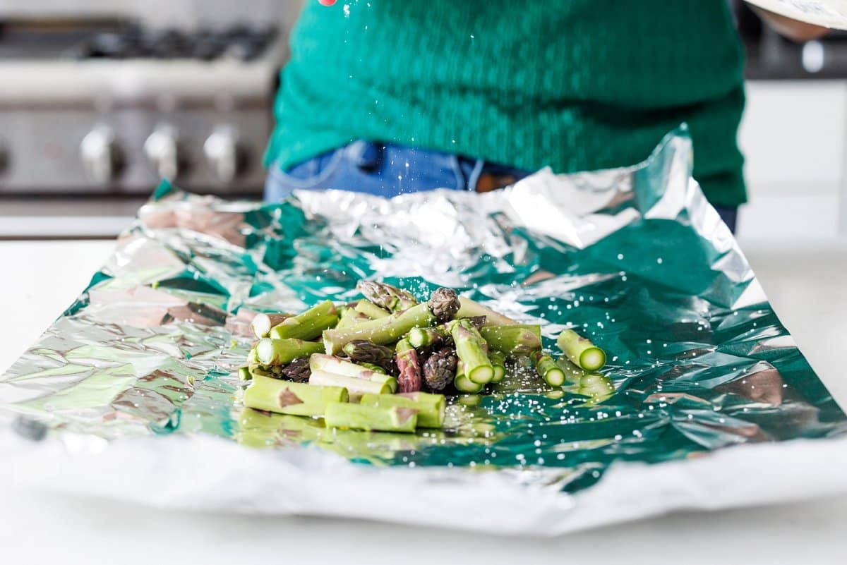 Then you’ll season the asparagus with some salt and black pepper, just to taste.