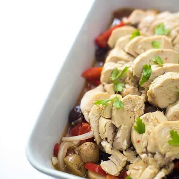 While we frequently grill sausage, peppers and onions, I wanted to create a “set it and forget it” slow cooker recipe that would still hit all of those flavors but wouldn’t require any hands-on work during dinner time. To lighten the dish a bit, I swapped out pork sausage for lean chicken breasts.