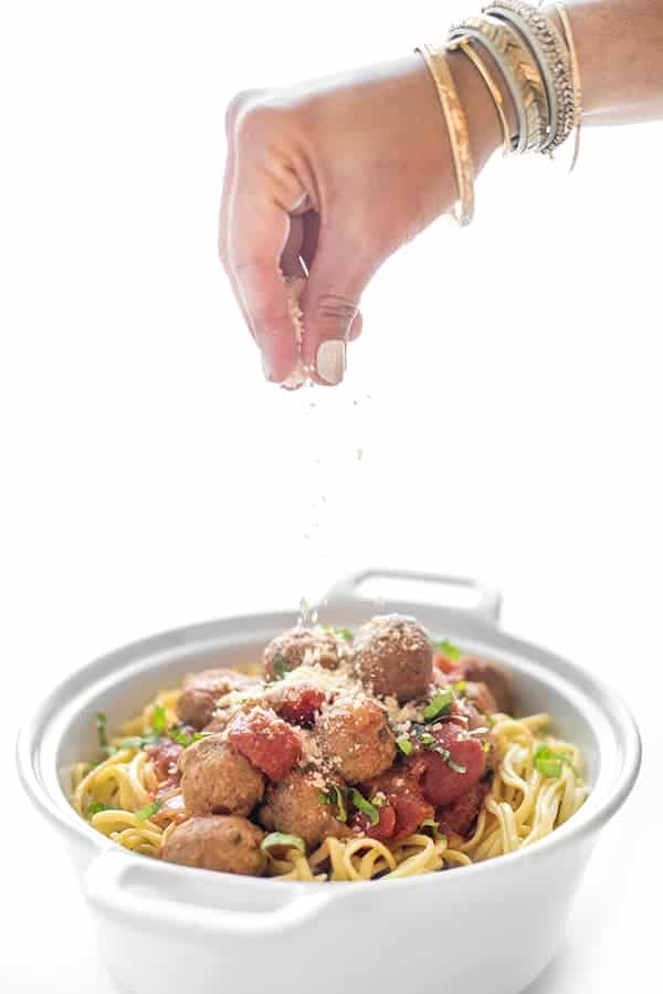 Serve over spaghetti or keep it low carb and serve with zucchini noodles. Or heck, skip the pasta and dunk the tomato sauce with crusty bread. The world is your oyster.