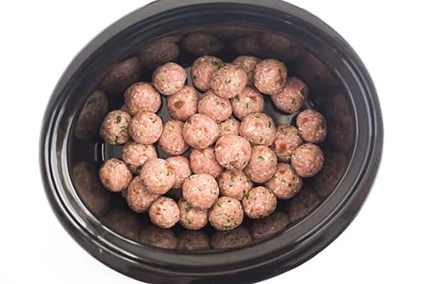 - To prepare the meatballs, place all of the ingredients in a medium bowl and use your hands to mix until evenly incorporated. Begin rolling meatballs using a small ice cream scoop and place inside your Crock-Pot slow cooker.