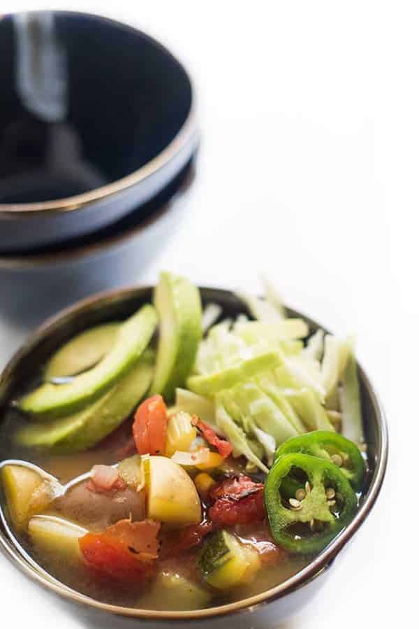 Additionally, as a mom of two growing boys, I love how easy it is to pack three or more servings of vegetables into every bowl. Case in point: this Southwest Chipotle Vegetable Soup is chock full of carrots, celery, zucchini and our favorite Little Potato Company creamer potatoes.