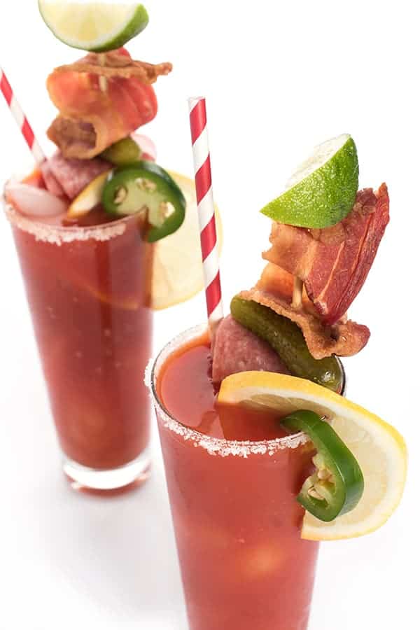 Because let’s be honest, when made right, a Bloody Mary is almost as filling as a meal. That is definitely the case with my over-the-top bacon garnish filled with pickles, salami and other goodies.