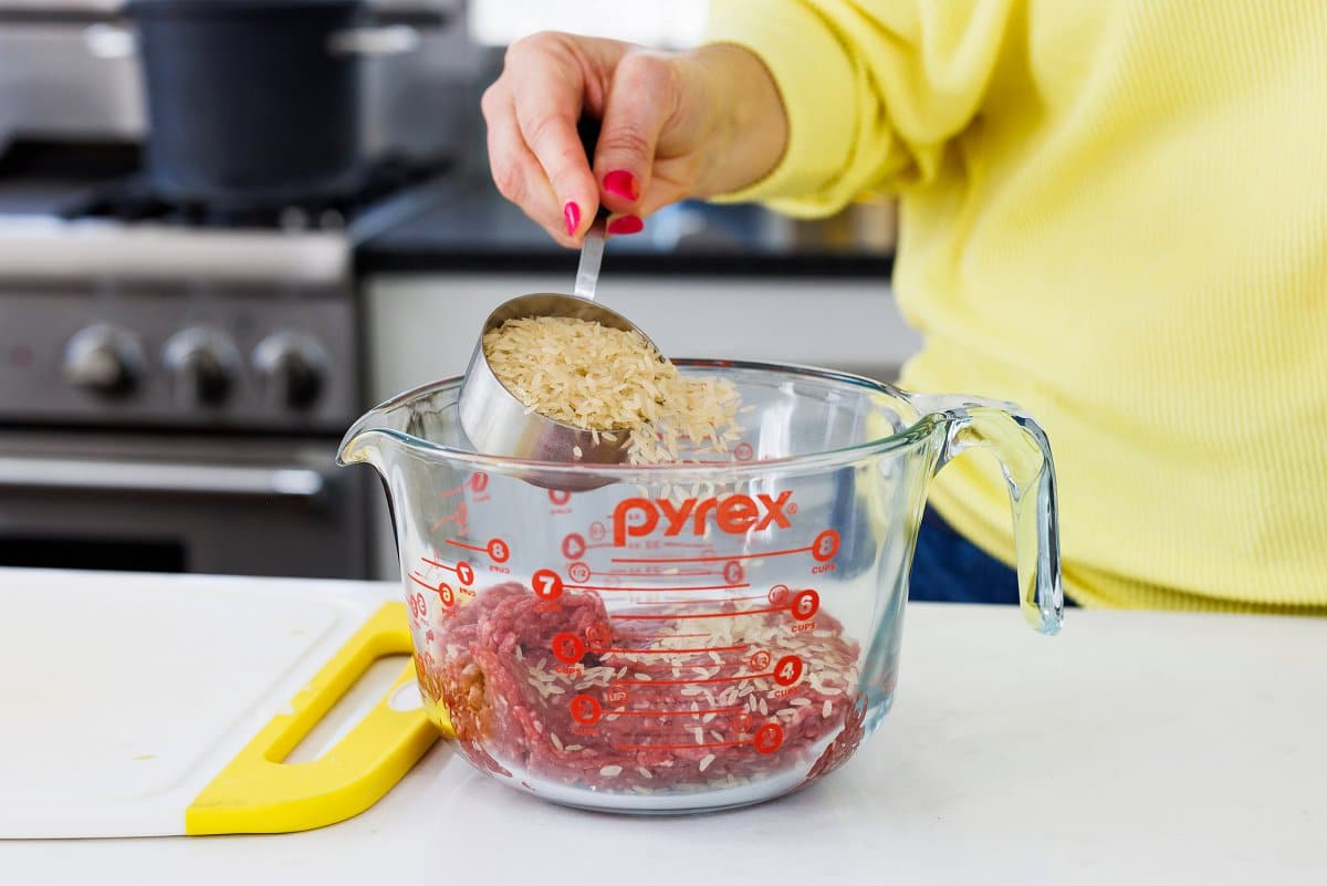 - White rice: Makes the filling just that: more filling! Helps to keep you full and to bind the meat mixture together.