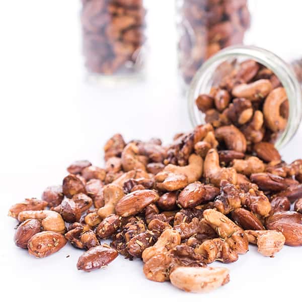 The ultimate party appetizer recipe or edible gift, these sweet and savory mixed nuts are always a crowd pleaser!