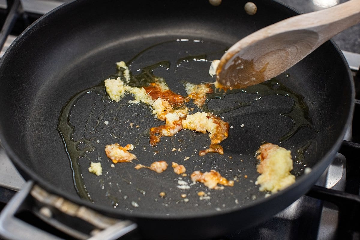 - Heat oil in a large wok or deep skillet over high heat. Add ginger, garlic and chili paste and heat until fragrant, about 30 seconds.