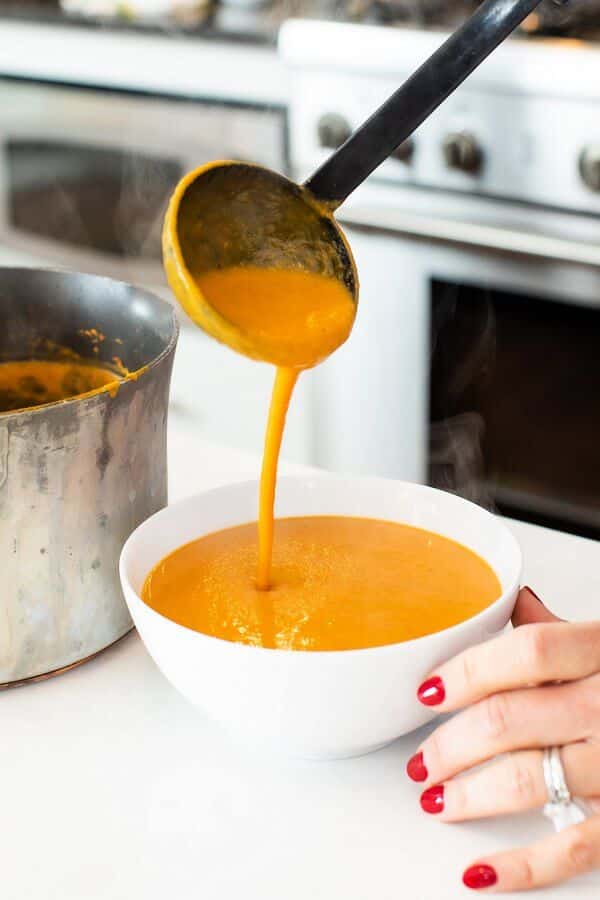 Soup season is year-round here in my house but throughout the year I try to vary my soup recipes based on what’s in season. When fall hits, I love using ingredients like apples, pumpkins, sweet potatoes, parsnips, and other root vegetables such as my Roasted Root Vegetable Soup